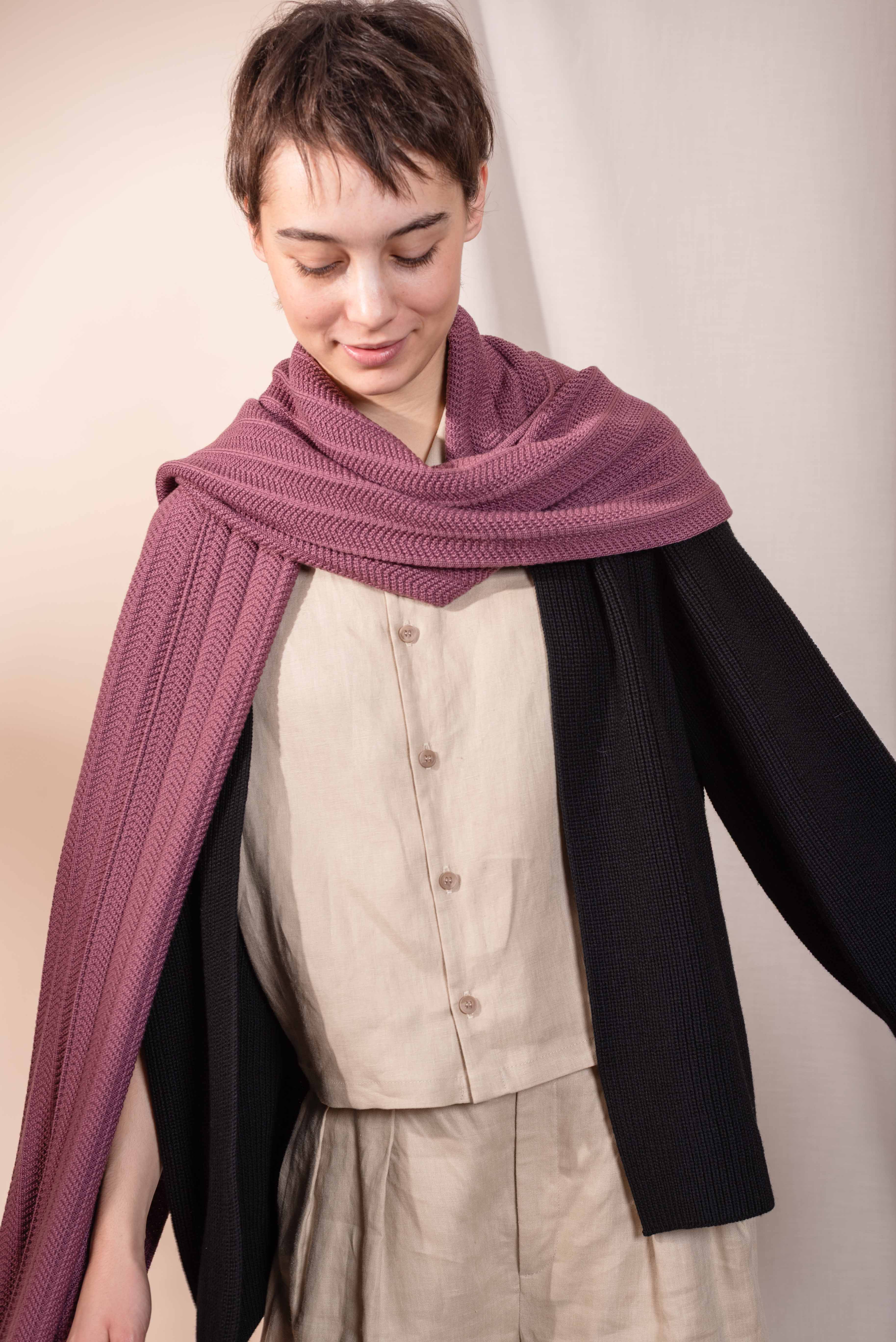 Locker und lang getragen, einmal oder zweimal umgeschlagen – Du entscheidest, wie Du sie stylst. Die Farben von Stola und Beanie sind harmonisch aufeinander abgestimmt und fügen sich ruhig und selbstverständlich in Deine Garderobe ein.